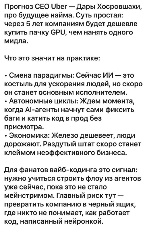 Русский ИТ бизнес07.03.2026 07:23Звучит как фантастика на уровне легкого бреда. Пройдет 5 лет и ничего особо не изменится :) Почему? А вот забывают про закон Амары и все.