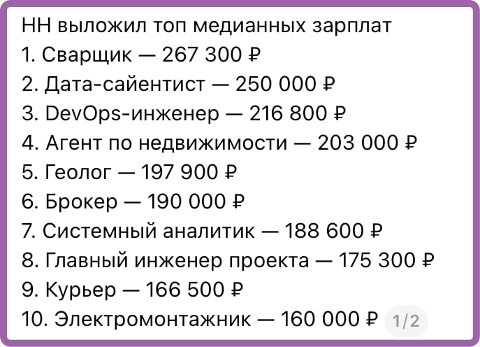 Русский ИТ бизнес13.03.2026 15:29Сварщики лидируют в медианных зарплатах. В затылок им дышат ... аналитики данных. Вот сюрреализм то какой :) @bezsmuzi