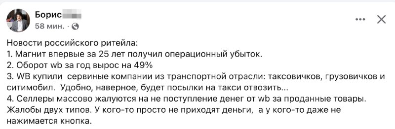 Русский ИТ бизнес03.04.2026 08:27Рехнуться темпы роста ВБ. Вообще не платить селлерам тоже дело житейское, пока депозиты позволяют :) @bezsmuzi
