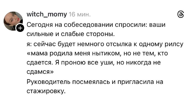 Кстати, важное качество, говорю как босс-с-нос :) ...