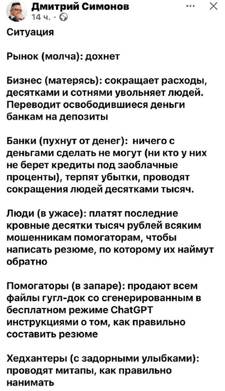 Русский ИТ бизнес10.04.2026 05:10Очень грубо но довольно точно описали текущую ситуацию. Немного утрировано, признаю. @bezsmuzi
