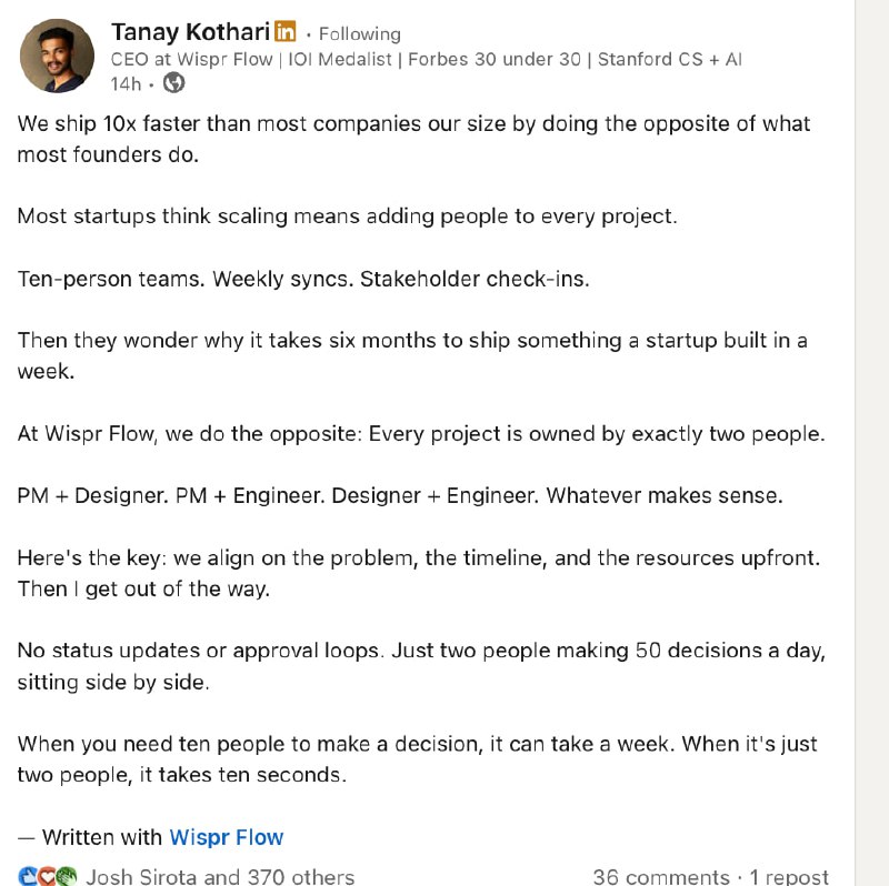 Burning Anna06.01.2026 06:39блин как же круто Wispr Flow может продвигать свой продукт - просто писать контент, а потом в конце добавлять, что написано с Wispr Flowсупер нативно