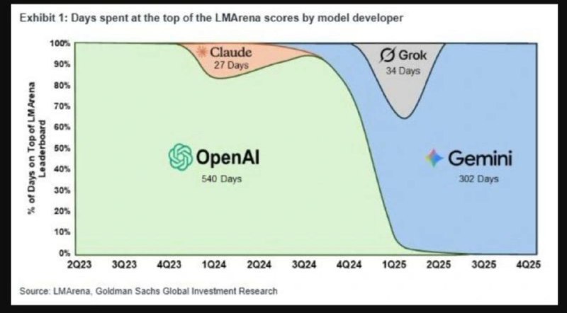 e/acc19.12.2025 12:07Любопытный график сегодня скинули. Полтора года назад Сергей Брин вернулся в Google, став де-факто СЕО направления ИИ в компании. Вот результат, когда СЕО-фаундер-инженер руководит компанией.