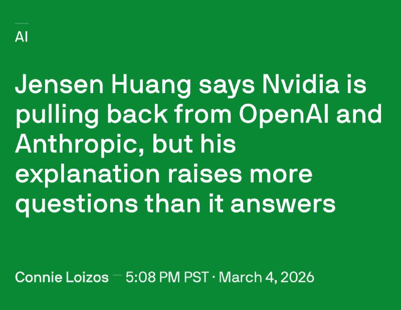 Data Secrets05.03.2026 12:11по итогу Nvidia инвестировали в три раза меньше, чем планировали, так что их вложение вовсе не означает, что между ними и OpenAI все гладко.