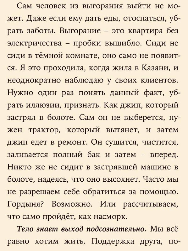 Лес твоей души09.04.2026 09:40Прочла книгу Светланы Мустафиной «Тело хочет жить», делюсь с вами избранными цитатами о теле, энергии, здоровье и выгорании.