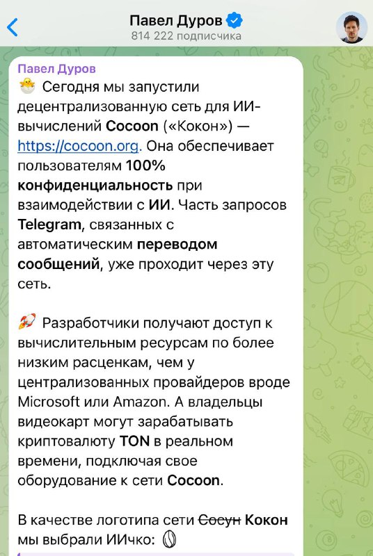 Марзаганов вещает30.11.2025 18:57Павел Валерьевич выбрал неординарную реакцию для анонса децентрализованной сети ИИ.
