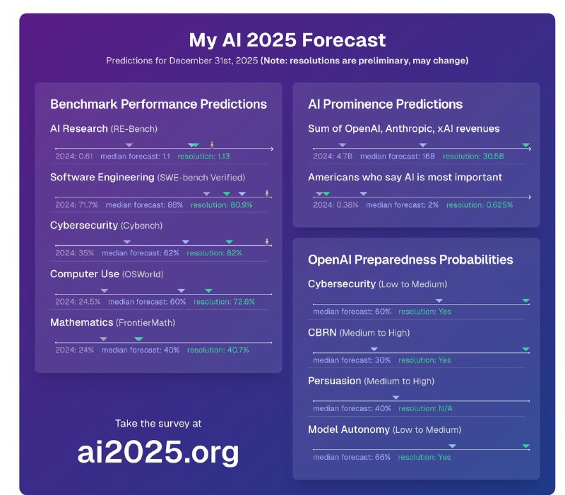 Сиолошная14.01.2026 16:47Надежда на то, что для подведения итогов AI 2025 Forecast от AI Digest бенчмарки пересчитают с лучшими доступными на тот момент моделями.